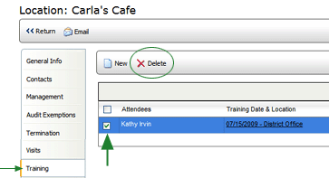 Click the TRAINING tab of a Location Profile to display a list of all training sessions attended.
